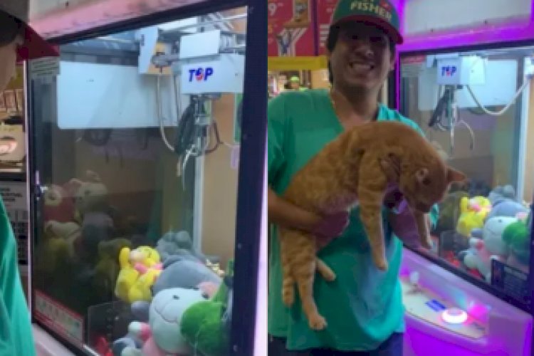 Homem “fisga” gato de verdade em máquina de pegar pelúcia no Mato Grosso do Sul