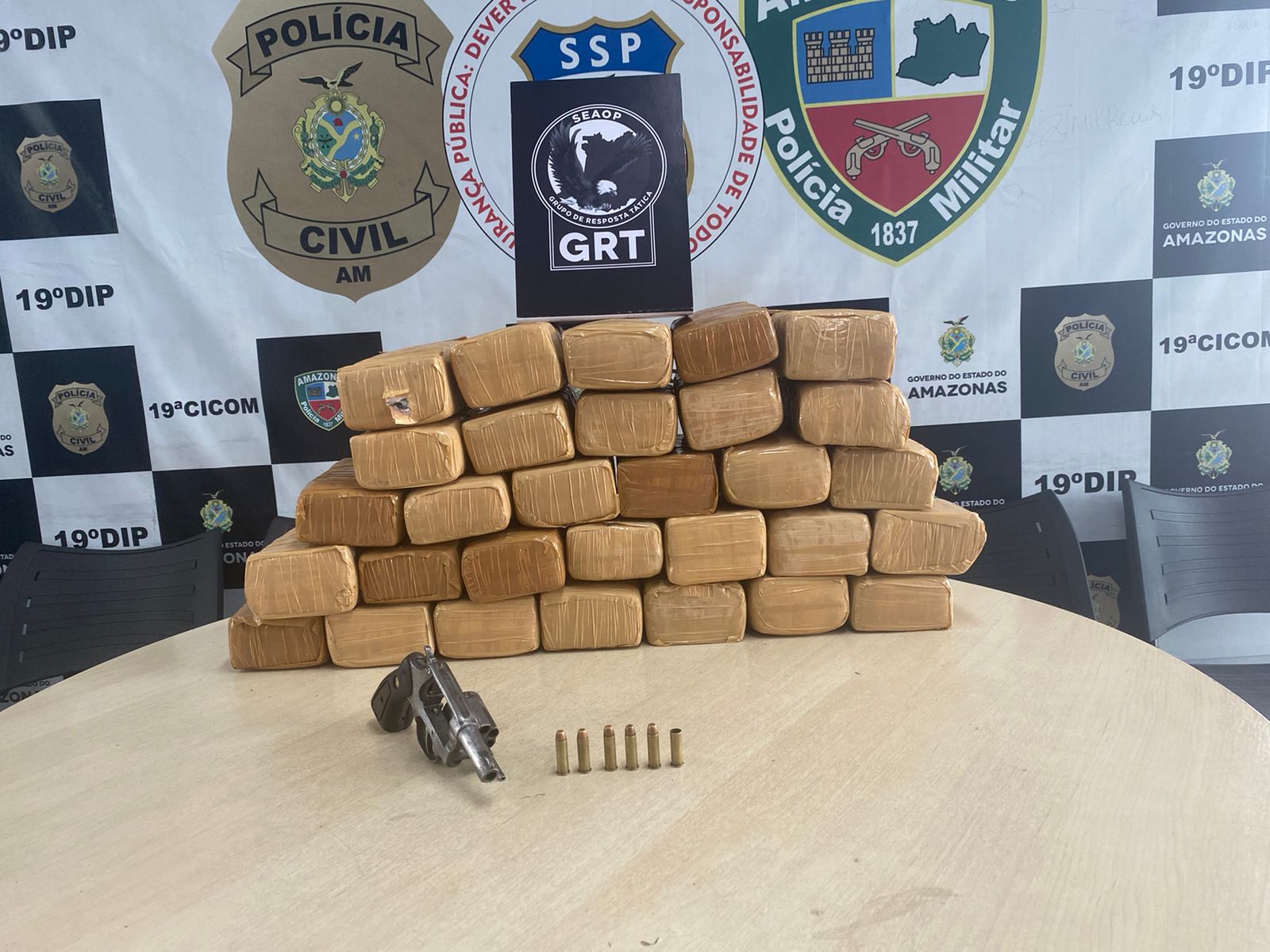 A polícia apreendeu 30 quilos de drogas, uma arma de fogo e munições na tarde desta quinta- feira, 22. A apreensão aconteceu em uma casa, na rua Casemiro de Abreu, bairro Compensa, zona Oeste de Manaus.