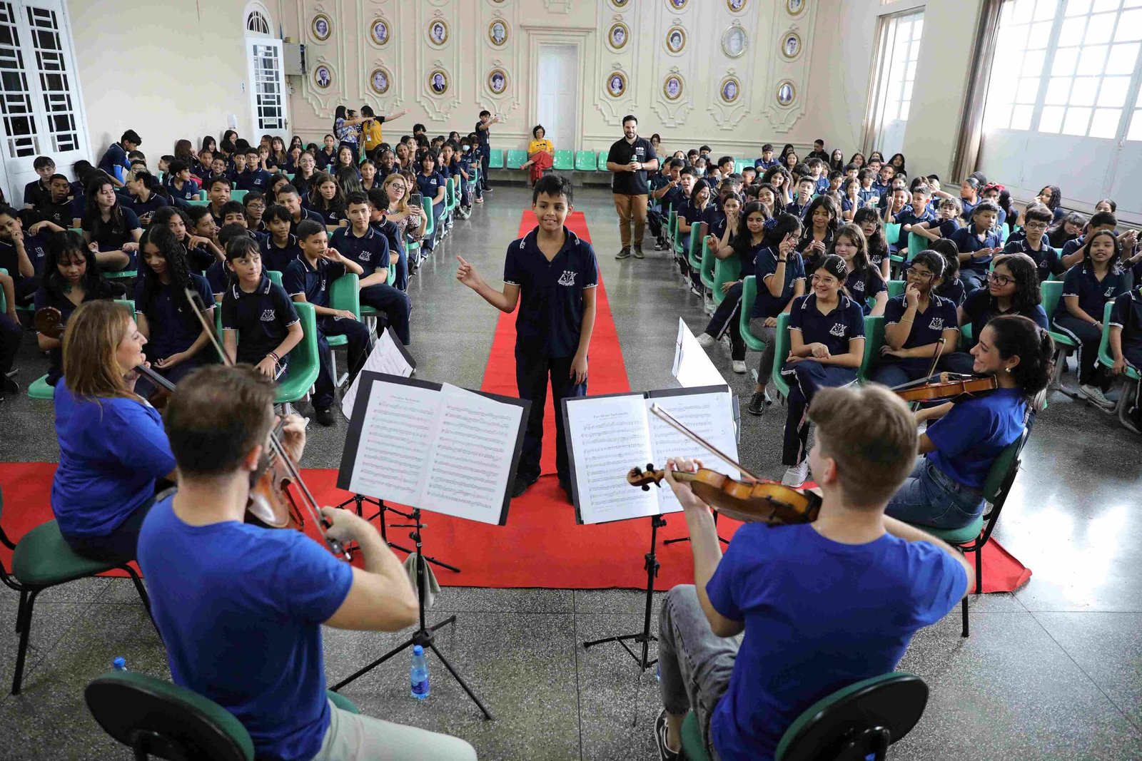 Os estudantes tiveram a oportunidade de conhecer curiosidades sobre os instrumentos utilizados no concerto, as obras apresentadas e o universo orquestral. Um dos alunos que participou da dinâmica de perguntas e respostas foi Thiago dos Santos, do 6º ano do Ensino Fundamental. Para ele, o momento foi uma oportunidade única.