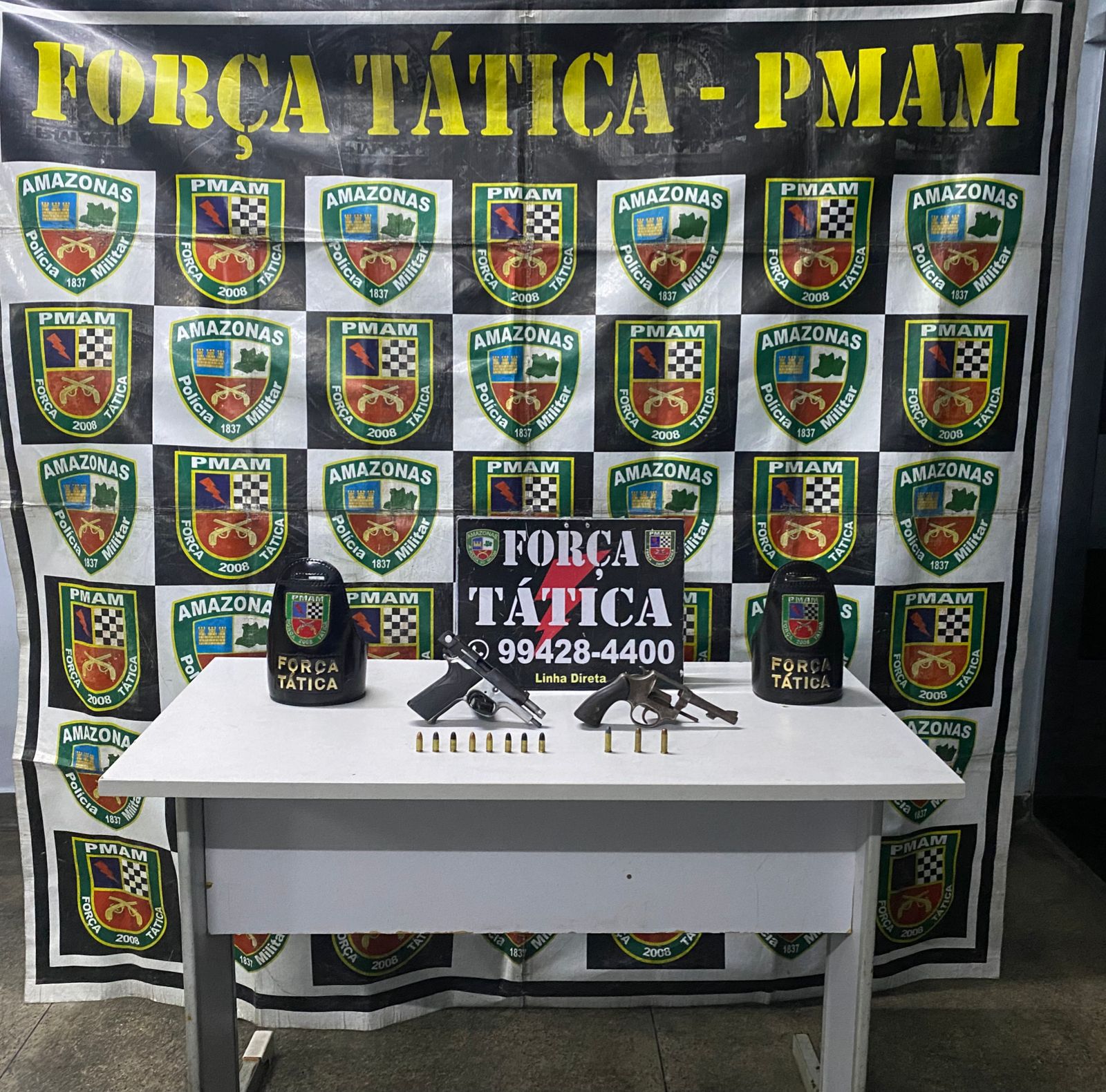 Duas armas de fogo foram apreendidas durante um patrulhamento de rotina na rua 1, beco Camapuã, bairro Petrópolis, zona Sul de Manaus. A apreensão aconteceu na madrugada desta segunda-feira, 31.