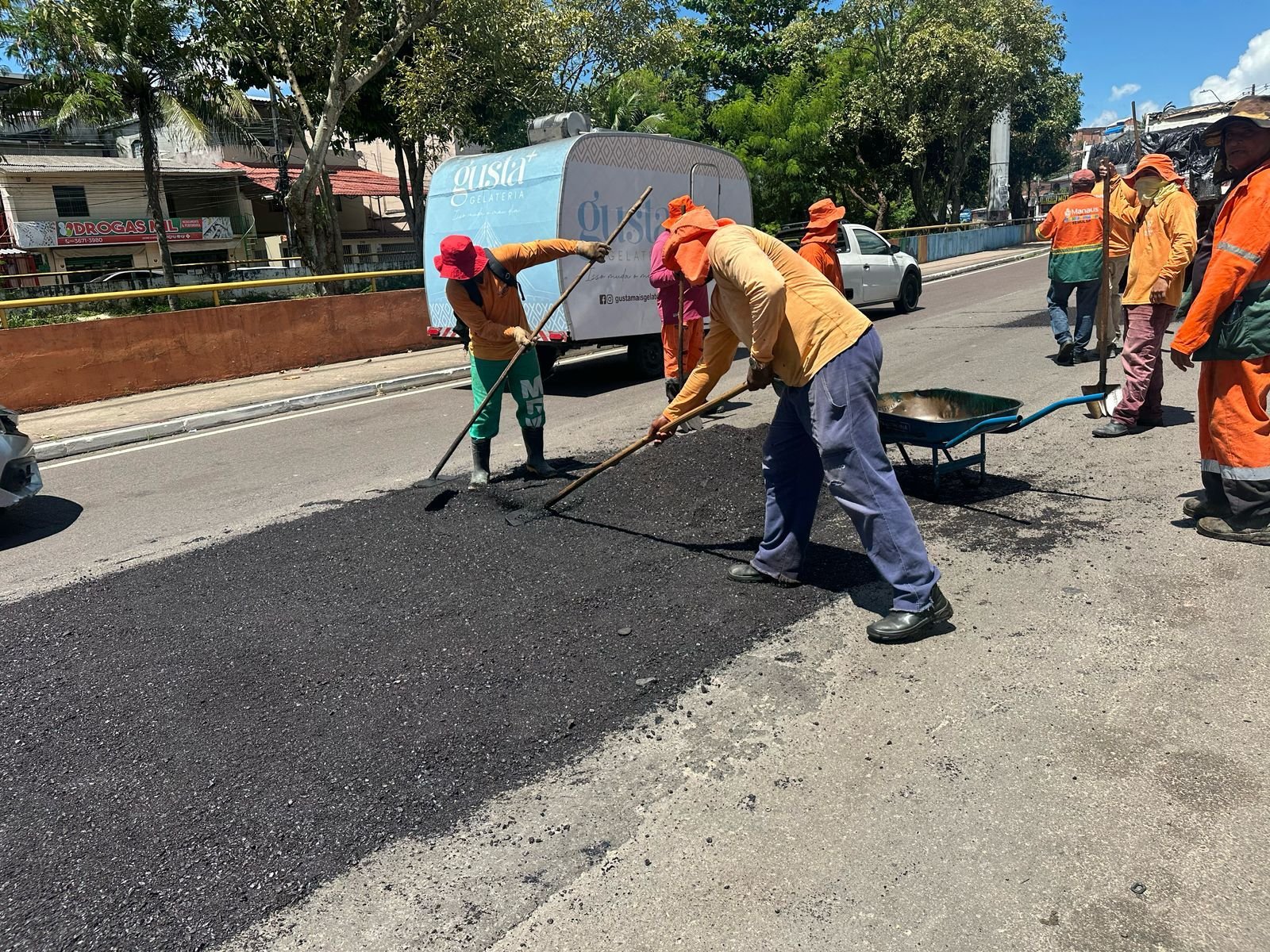 A equipe, composta por 20 trabalhadores, executa a manutenção na avenida que está com partes desgastadas. O serviço de recuperação asfáltica é essencial e colabora na melhoria da mobilidade urbana, proporcionando mais segurança para os motoristas, ciclistas e pedestres, e ainda contribui para o fluxo do transporte público.
