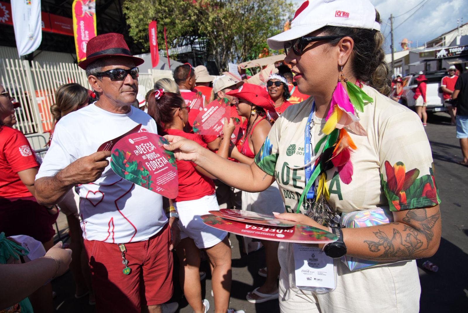 “Estivemos presentes na galera encarnada e realizamos a distribuição de ventarolas, pois o calor aqui é intenso. Além disso, conversamos com os brincantes para ouvir suas demandas e tomar as medidas cabíveis, caso necessário. Outro ponto importante é o cumprimento das medidas recomendadas aos órgãos competentes, para garantir um festival digno e saudável a todos os participantes”, explicou a defensora.