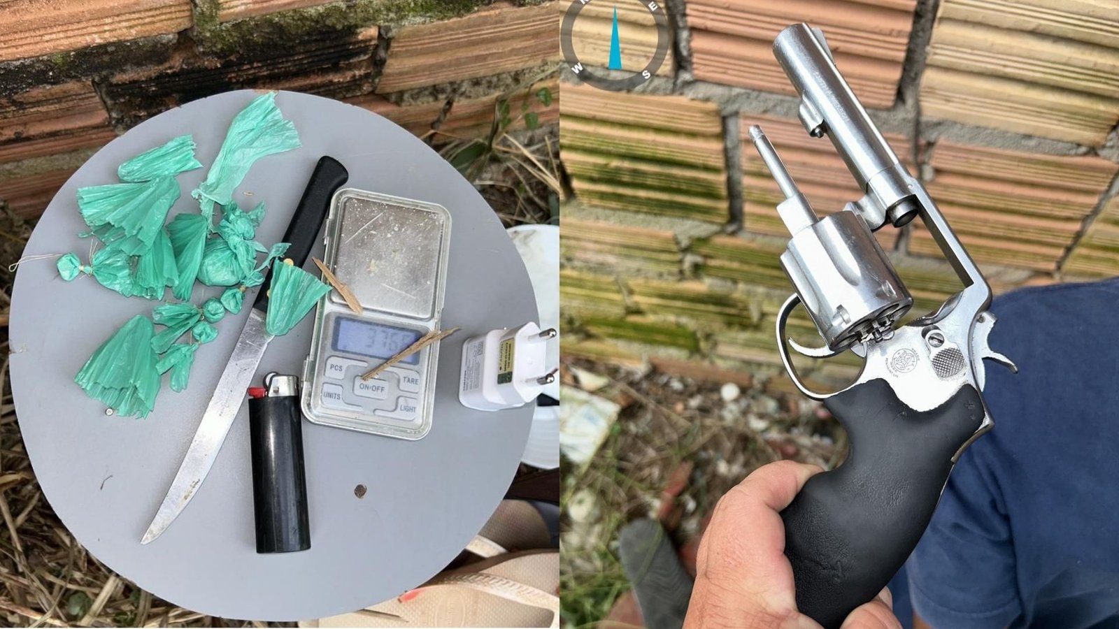 “Ele foi abordado e durante revista pessoal apreendemos uma porção de maconha, um revólver calibre 38, além de uma faca e uma balança de precisão utilizada para pesar os entorpecentes”, explicou o delegado.