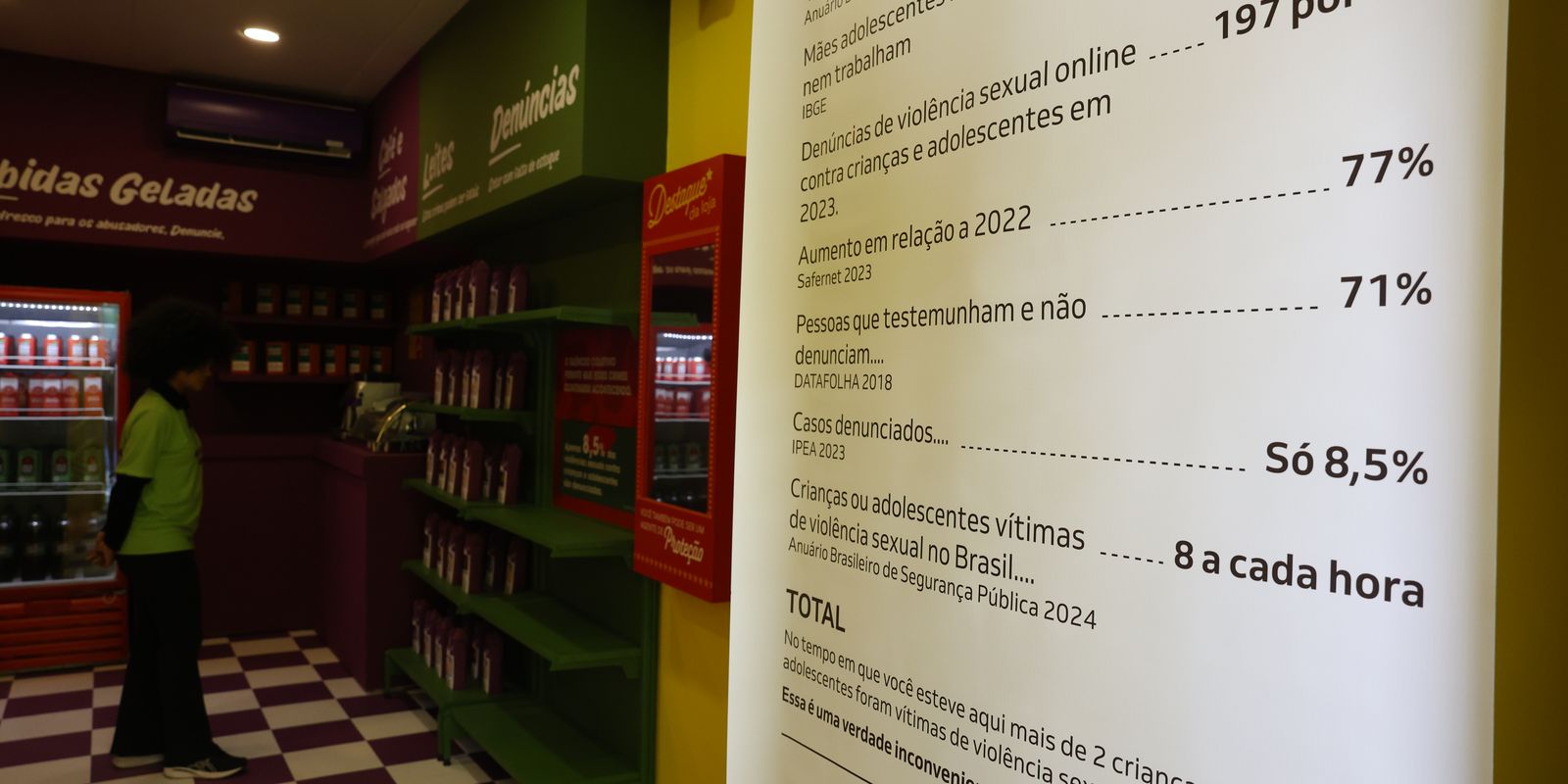 Para chamar a atenção sobre o tema, uma das empresas participantes manterá durante três dias uma “Loja de Inconveniência”, na área externa do Shopping Cidade São Paulo, na Avenida Paulista. O espaço tem uma experiência imersiva, aberta ao público, para expor dados alarmantes sobre violência sexual de crianças e adolescentes no Brasil.