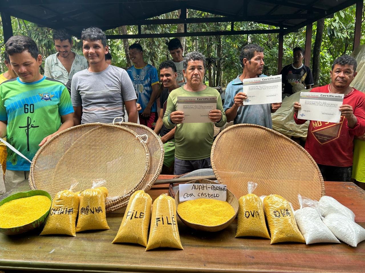 Além da emissão de CAF’s, o instituto também realizou, durante a ação itinerante, uma oficina de boas práticas de beneficiamento de farinha de mandioca. A capacitação ocorreu na comunidade Castelo, também na região do rio Auti-Paraná