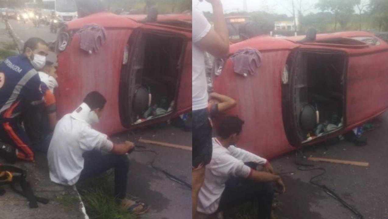 Um rapaz que teve sua identidade preservada, acabou dormindo ao volante e capotando seu veículo na manhã desta terça-feira (13), na Avenida Efigênio Sales, zona centro sul da capital amazonense.