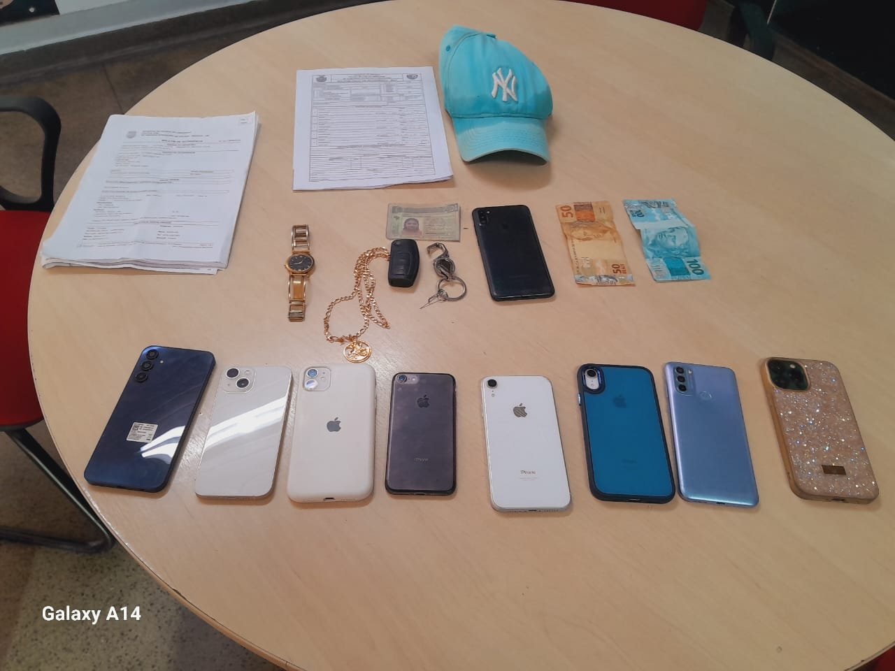 Os PMs, junto com a mulher, foram até o local apontado pelo GPS e abordaram um homem. Além do celular da vítima, os policiais militares encontraram mais oito aparelhos celulares em sua posse. O suspeito foi conduzido para o 1º Distrito Integrado de Polícia (DIP).