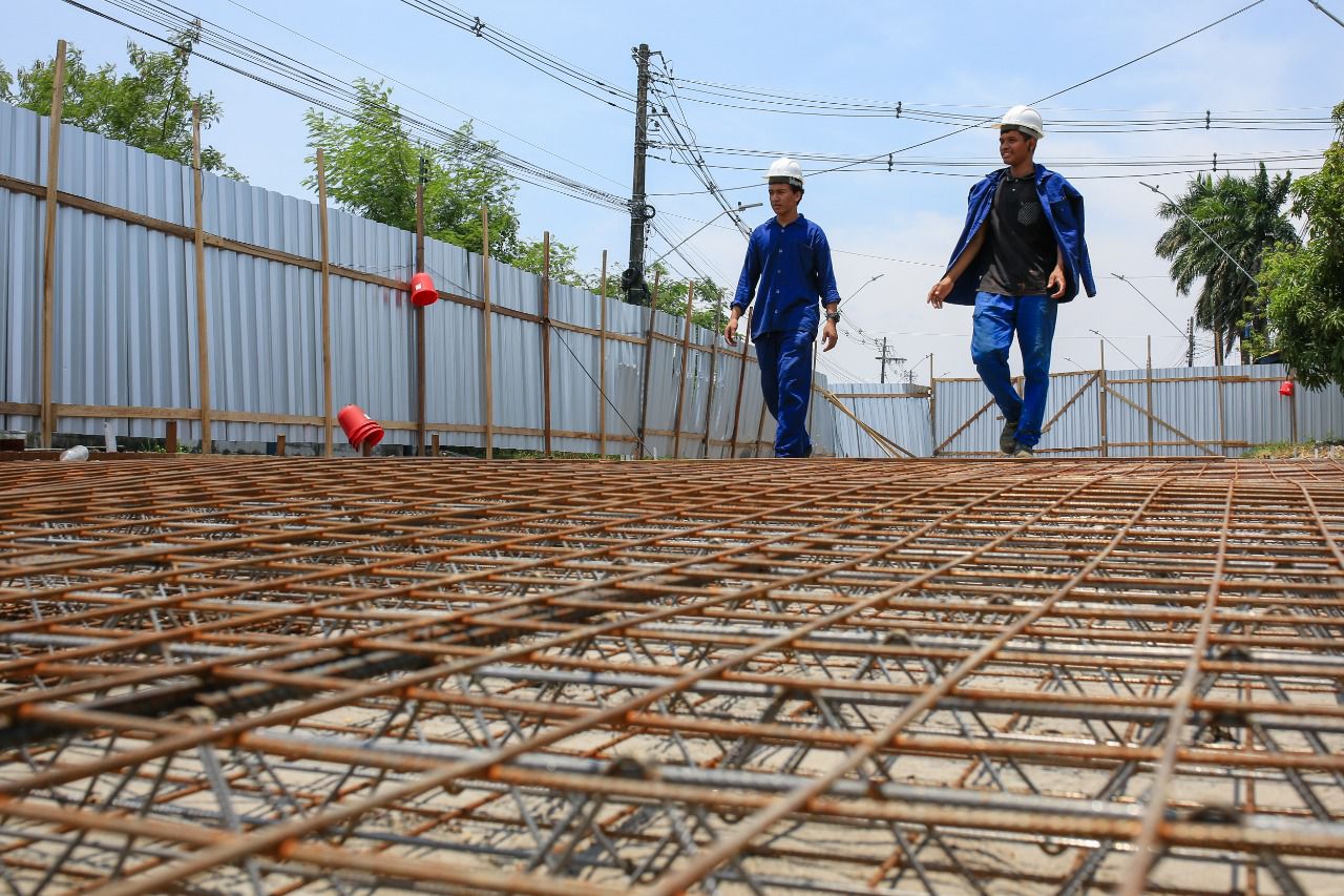 Em seguida, foram colocadas uma camada de concreto e duas de ferro para garantir a sustentação. Nessa fase da obra, as equipes de engenharia aguardam a cura do concreto (procedimento que visa retardar a evaporação da água empregada na preparação da mistura, permitindo assim a completa hidratação do cimento), com duração média de 7 a 21 dias. A primeira camada foi feita com concreto CCR (Concreto Compactado a Rolo), e na última, será implantado concreto de 35 Mpa (Mega Pascal), de alta resistência.