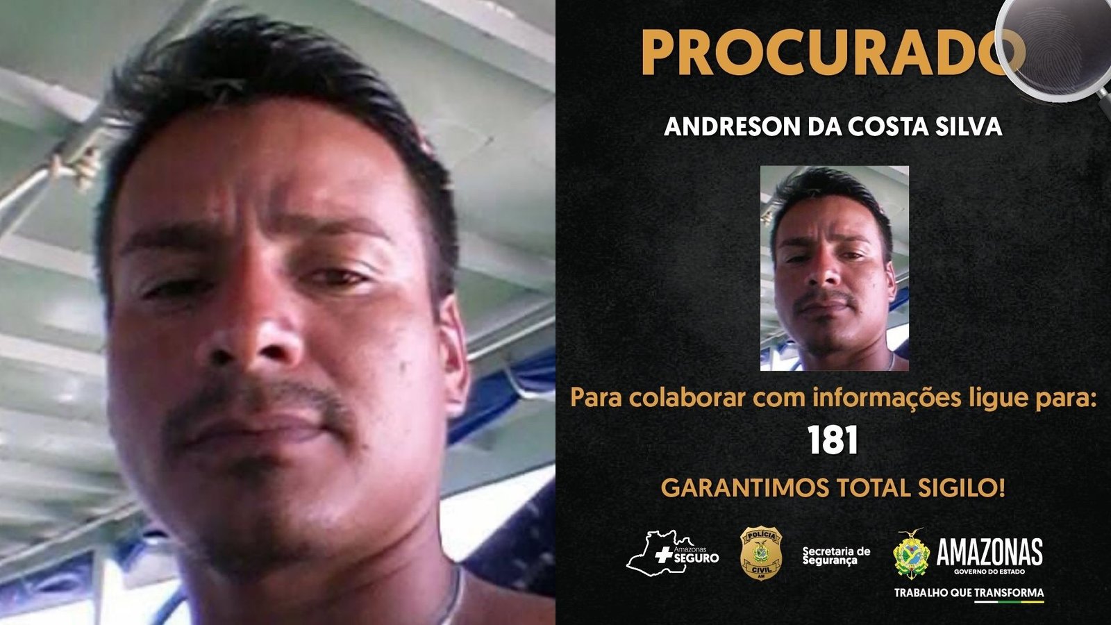 A PC-AM solicita a quem saiba a localização de Andreson da Costa Silva, que as informações sejam repassadas ao número 181, da Secretaria de Estado de Segurança Pública (SSP-AM).