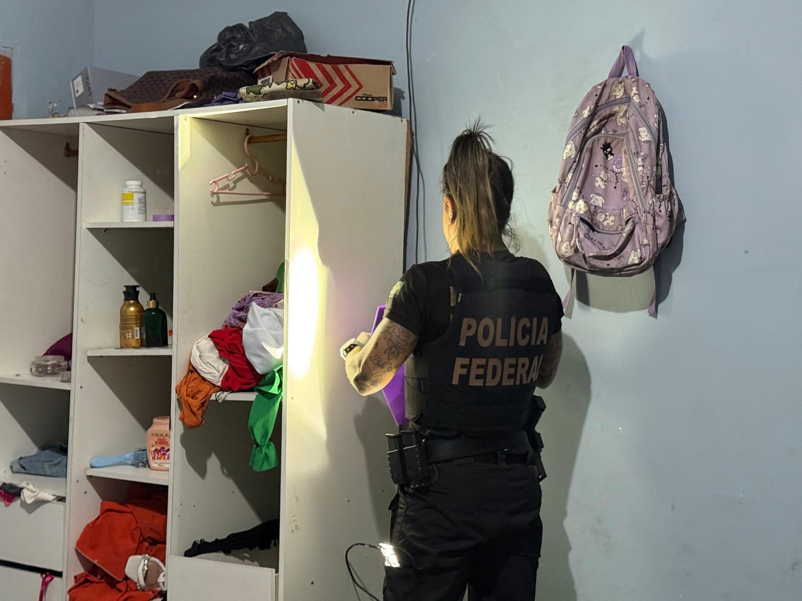 Na ocasião, policiais federais realizaram o cumprimento de três mandados de busca e apreensão de equipamentos eletrônicos na casa de três investigados que residem no mesmo domicílio.