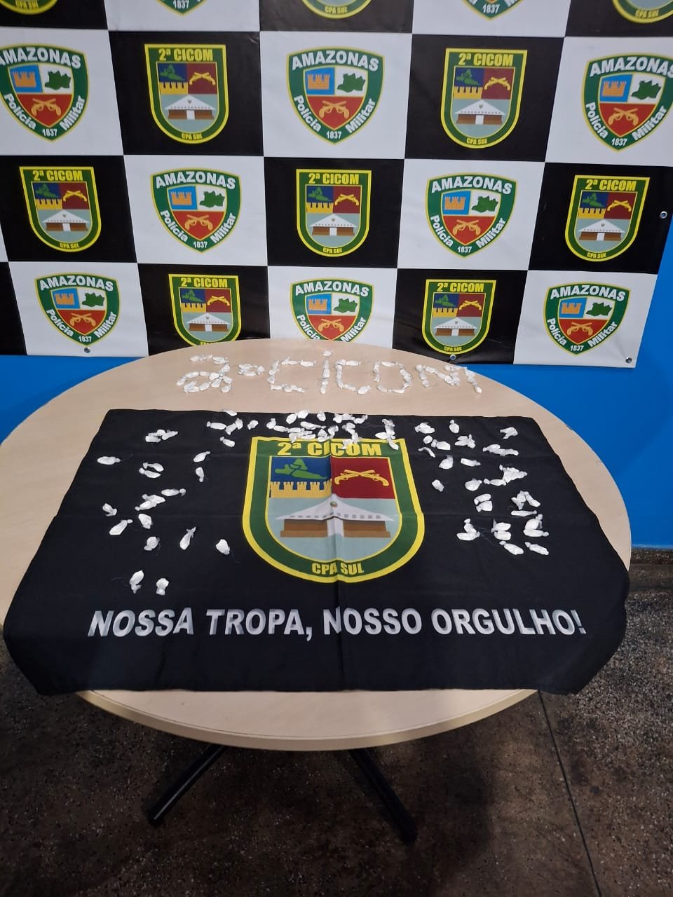 Ao perceberem a aproximação das viaturas policiais, os suspeitos fugiram. Durante buscas no perímetro, a equipe da PMAM encontrou uma pochete abandonada contendo 15 porções de substância entorpecente do tipo cocaína. O material foi levado ao 1º DIP.