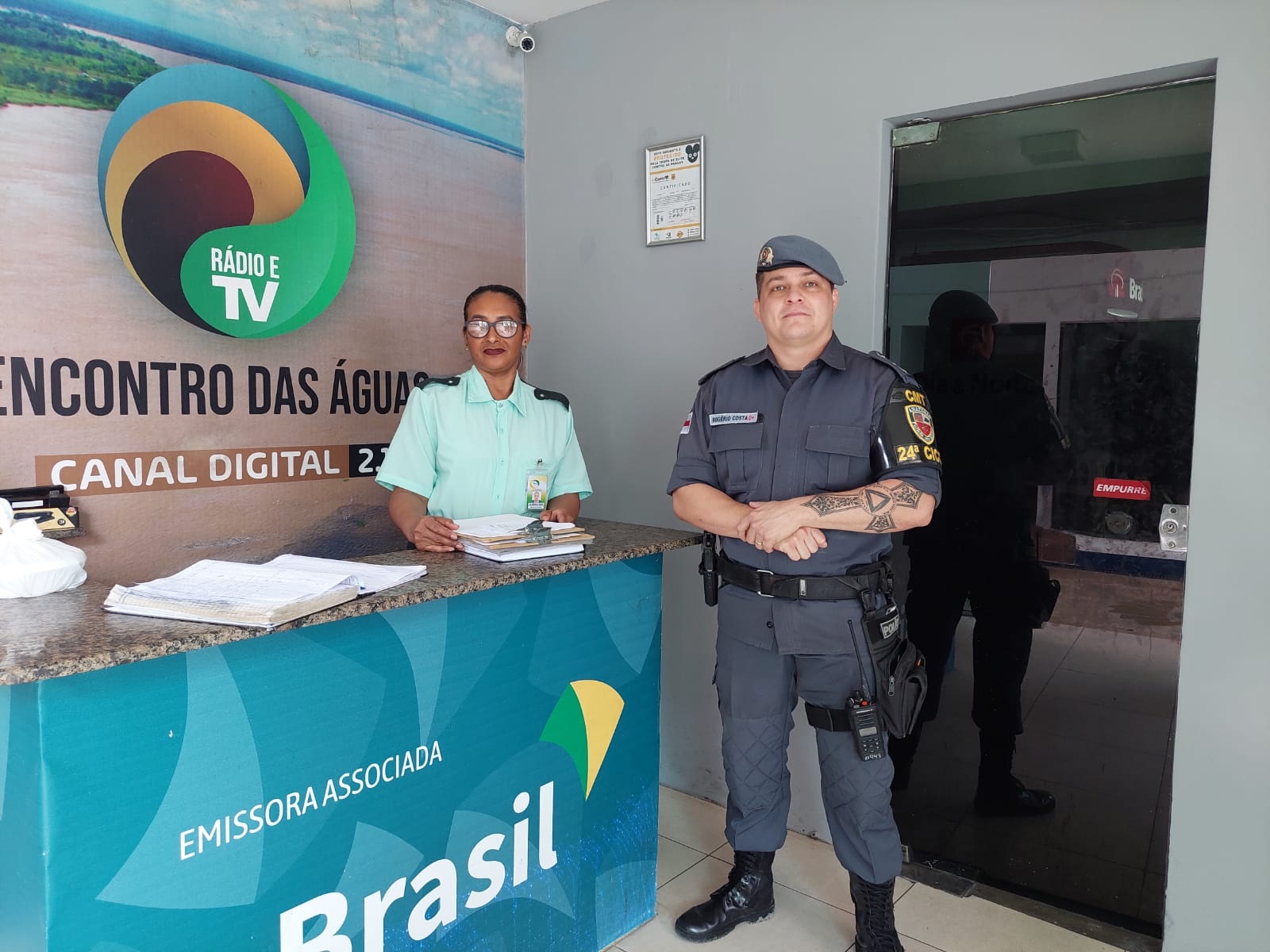 O comandante da 24ª Companhia Interativa Comunitária (Cicom) realizou contato com a emissora para entregar os telefones da companhia para continuar uma comunicação direta entre a equipe policial e os trabalhadores.