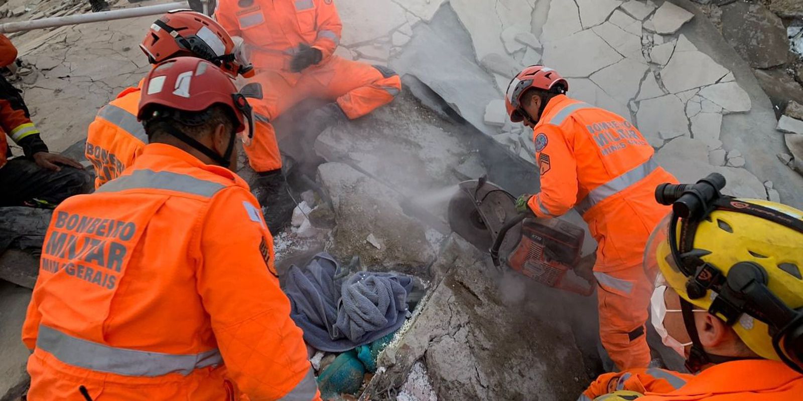 Bombeiros trabalham nos escombros do edifício que desabou em Belo Horizonte – Divulgação/Bombeiros de Minas Gerais