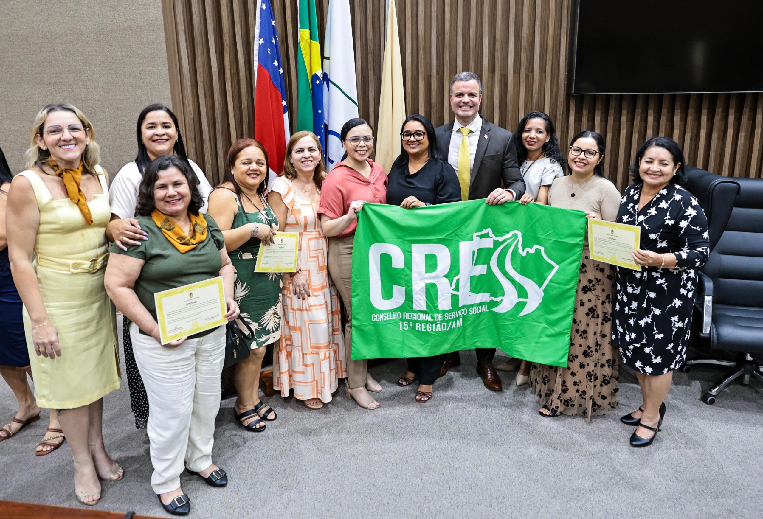 A sessão solene contou com a presença dos vereadores Diego Afonso (União Brasil), Dione Carvalho (Agir) e Paulo Tyrone (PMB), além da secretária executiva da Secretaria de Estado da Assistência Social, Selma Melo; da analista social da Defensoria Pública, Selene Gomes; de Maria Auxiliadora Barbosa, conselheira do Conselho Regional de Serviço Social do Amazonas (CRESS-AM); e de Simone Lisboa, representante do Sindicato Estadual dos Assistentes Sociais do Amazonas (SEASAM).