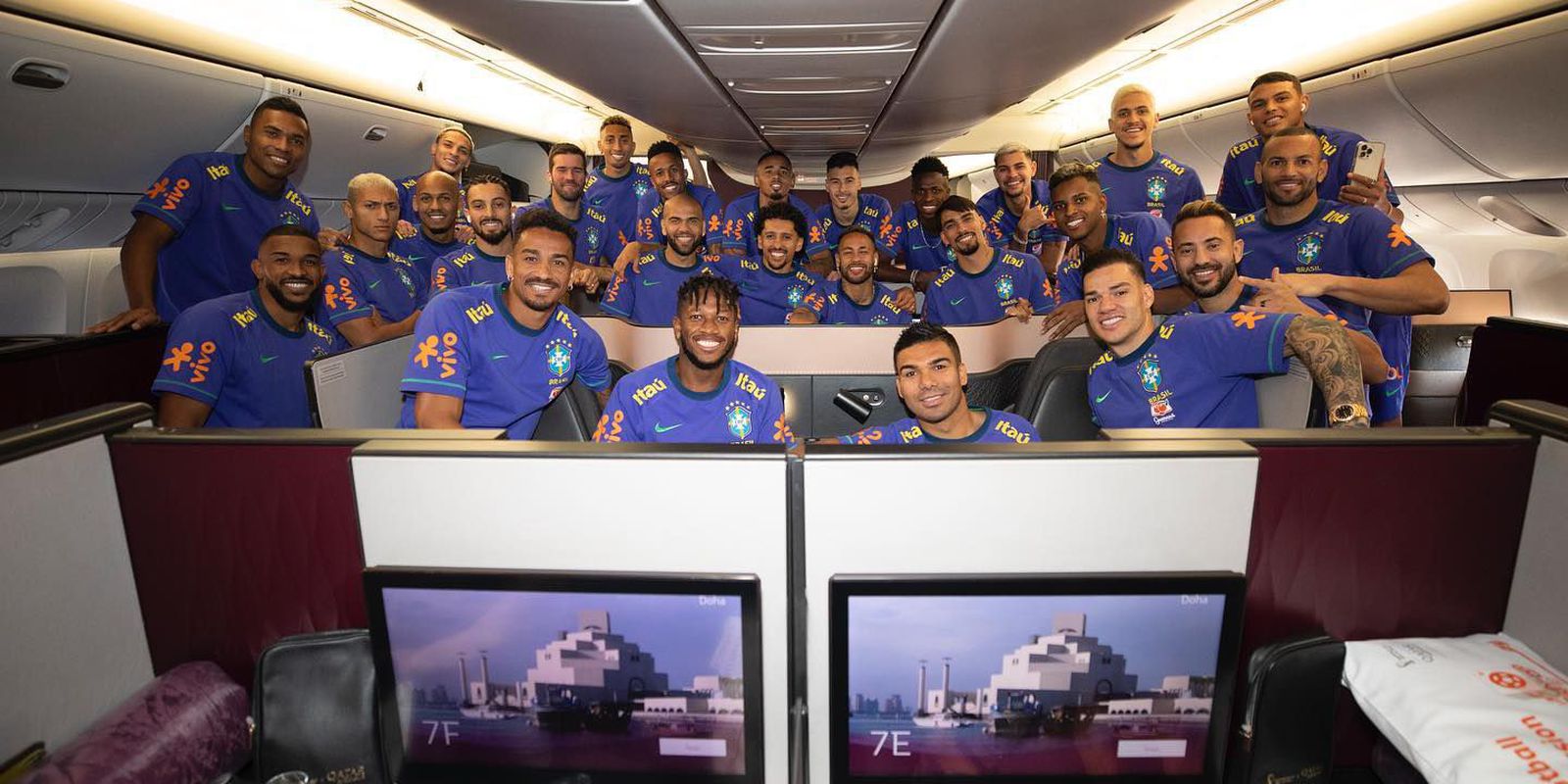 A seleção brasileira de futebol embarcou, na manhã de hoje (19), em Turim, na Itália, rumo ao Catar, onde disputará a Copa do Mundo 2022, em busca de seu sexto título mundial. O time passou a última semana no centro de treinamento da Juventus, preparando-se para o torneio.