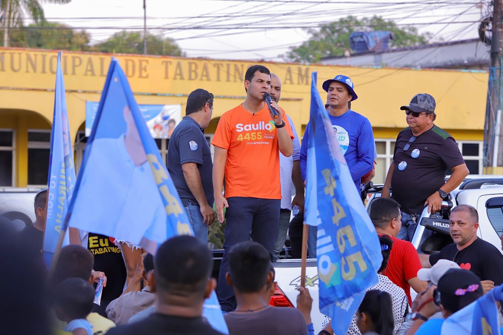 Os municípios de Tabatinga e Benjamin Constant receberam a campanha do deputado Saullo Vianna (UB), nesta quarta-feira (14). Com grande receptividade, o candidato a deputado federal fez uma carreata pelas ruas das cidades, finalizando com comício. Muitas pessoas se fizeram presentes para ouvir as propostas de Saullo.