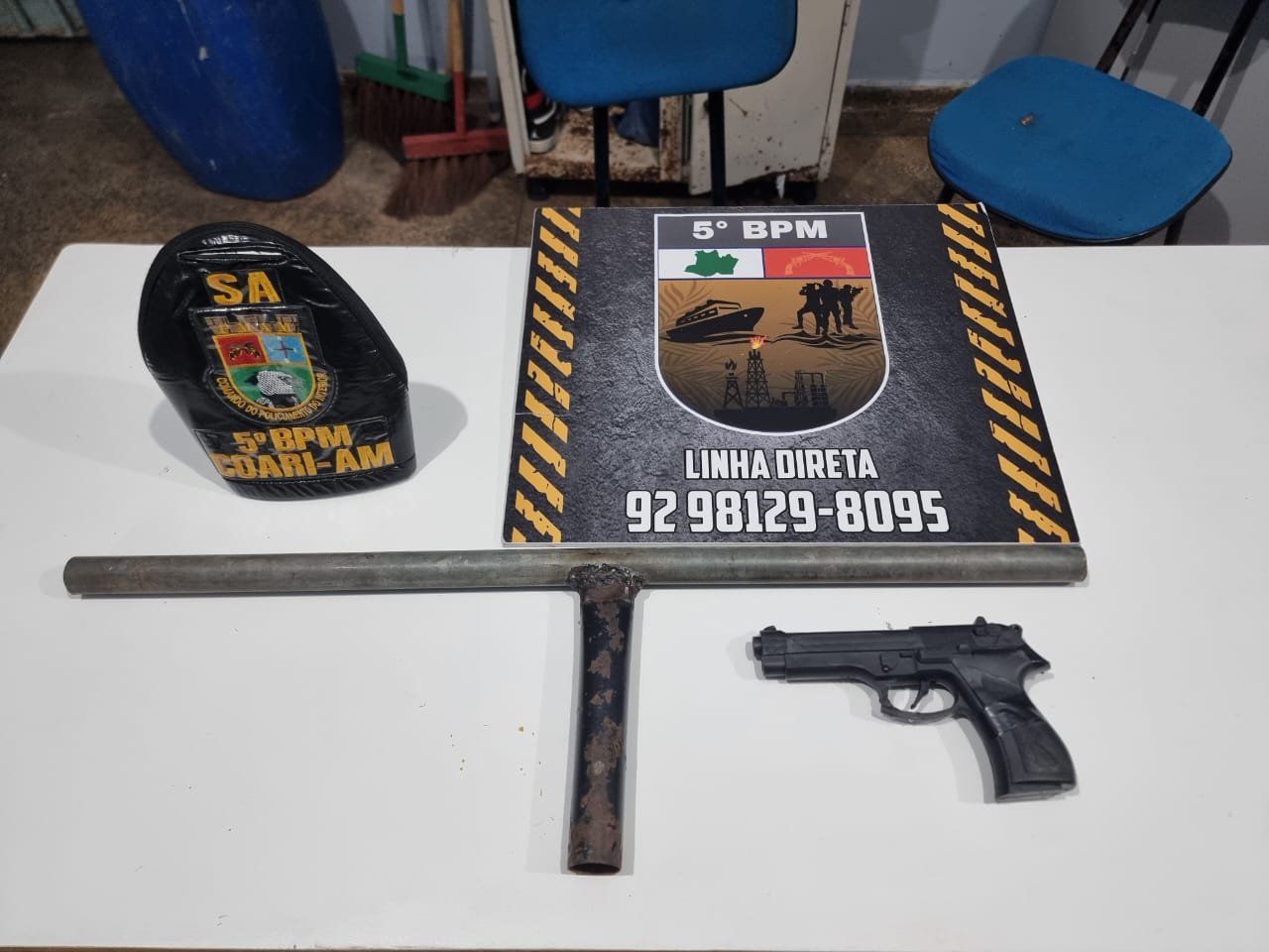 Com eles, os PMs encontraram um simulacro de arma de fogo e uma arma de fogo de fabricação caseira. O trio foi conduzido à delegacia interativa da Polícia Civil do Amazonas (PC-AM) em Coari.